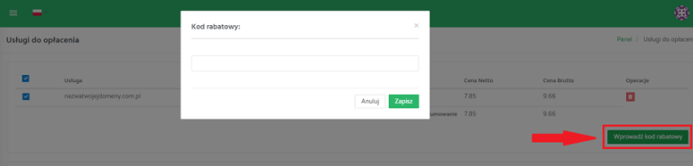 Zaraz po przejściu do koszyka kliknij na duży zielony przycisk. W nowo otwartym okienku należy wprowadzić otrzymany kod promocyjny aby obniżyć cenę usługi w koszyku. Nie zapomnij ocenić naszego kuponu, dzięki któremu oszczędziłeś pieniążki – oczywiście na 5 gwiazdek 🙂